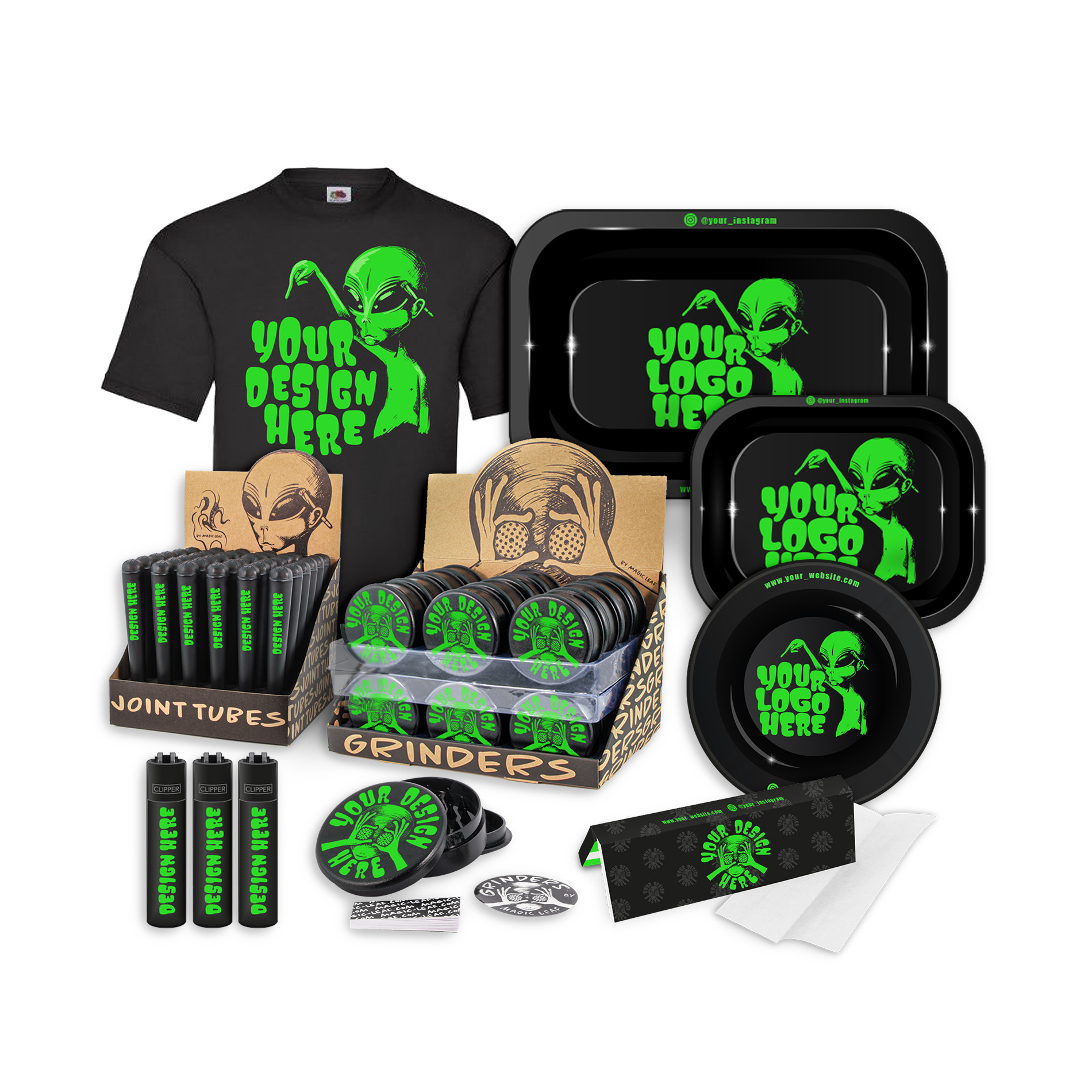 Customize smoking accessories from the Magic Leaf product catalogue, fast on demand!
