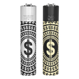 Display box of 12 printed metal clipper lighters with a separate silver box for each lighter. Gelato Amsterdam Cannabis Leaf print.